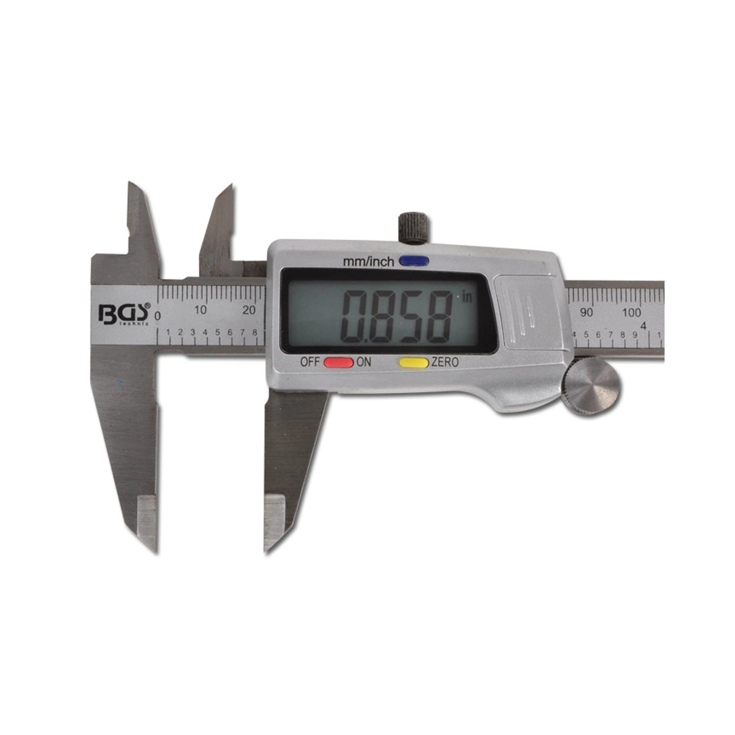 Präzise, schnell und einfach ablesbar: Die digitale Schieblehre von BGS ist das ideale Werkzeug für exakte Messungen in Werkstatt und Hobbybereich. Mit einem Messbereich von 0–150 mm ermöglicht sie zuverlässige Innen-, Außen- und Tiefenmessungen. Die gut lesbare Digitalanzeige sorgt für maximale Genauigkeit und komfortables Arbeiten – auch bei feinen Toleranzen.